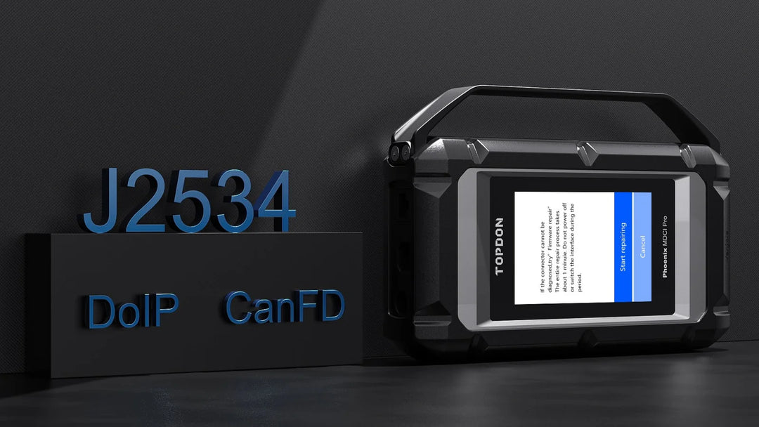 The Phoenix Smart includes the advanced MDCI Pro, a unified communication interface engineered for both high-speed passenger car protocols (DoIP/CAN FD) and heavy-duty commercial standards (12V/24V).